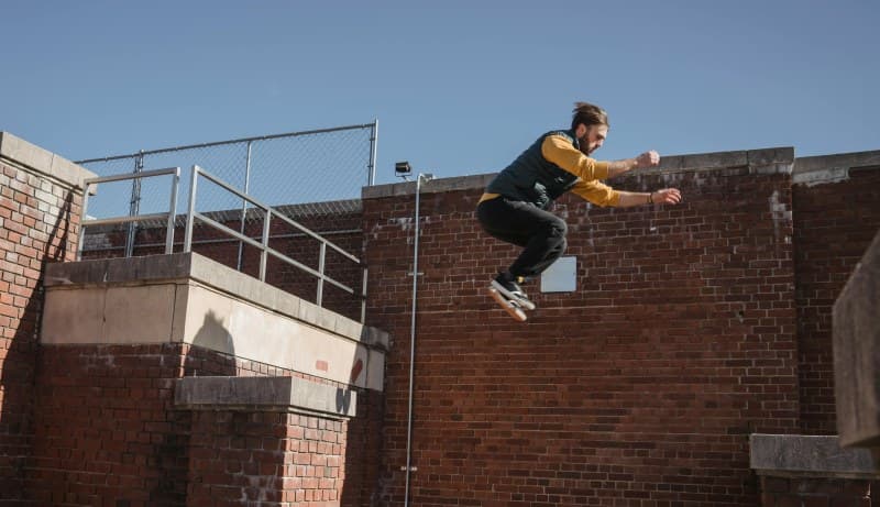 Gear-wise, parkour is low-cost: just a pair of supportive cross-trainers (avoiding overly cushioned shoes that hinder balance) and comfortable, non-restrictive clothes. No fancy equipment neededâyour local park is your gym.